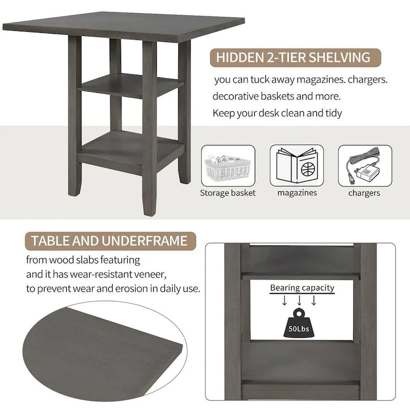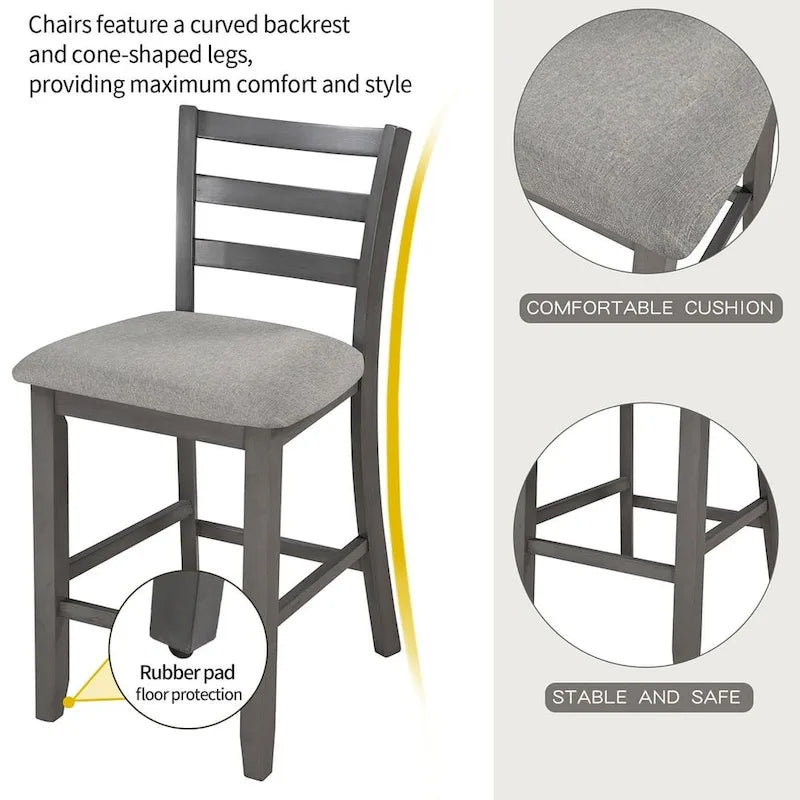 5 PCS Wooden Counter Height Dining Set with Padded Chairs and Storage Shelving