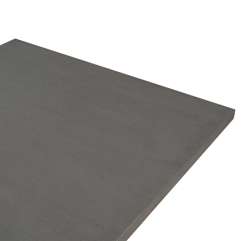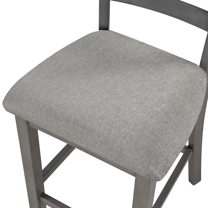 This modern 5-piece dining set combines style, comfort, and functionality, making it a perfect fit for small spaces. The table is crafted from durable rubber wood, with a sleek, minimalist design, complemented by the textured gray burlap seating on each of the four chairs. The hidden two-tier shelf under the table offers additional storage for items like magazines, decorative baskets, and chargers. The chairs are reinforced with thick wooden rails for added strength and feature cone-shaped legs for a stylish finish. Ideal for family meals, the compact design maximizes space while still accommodating up to four people comfortably.