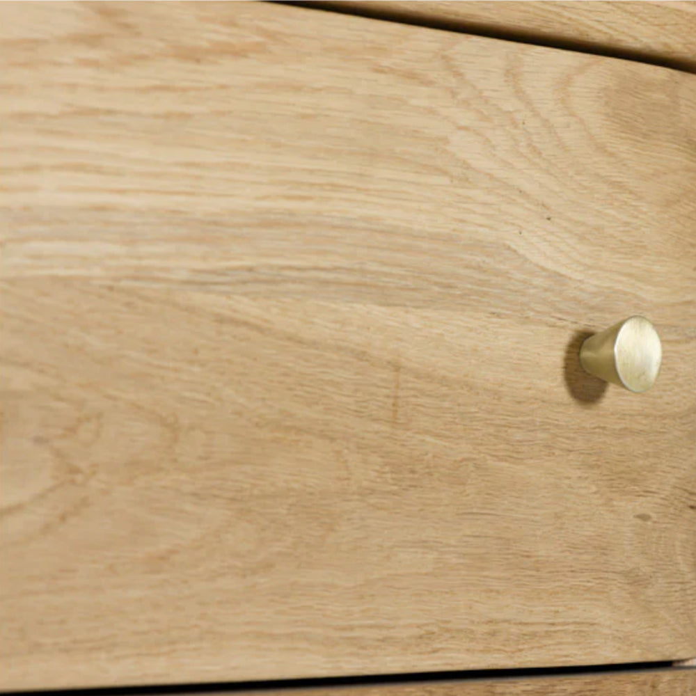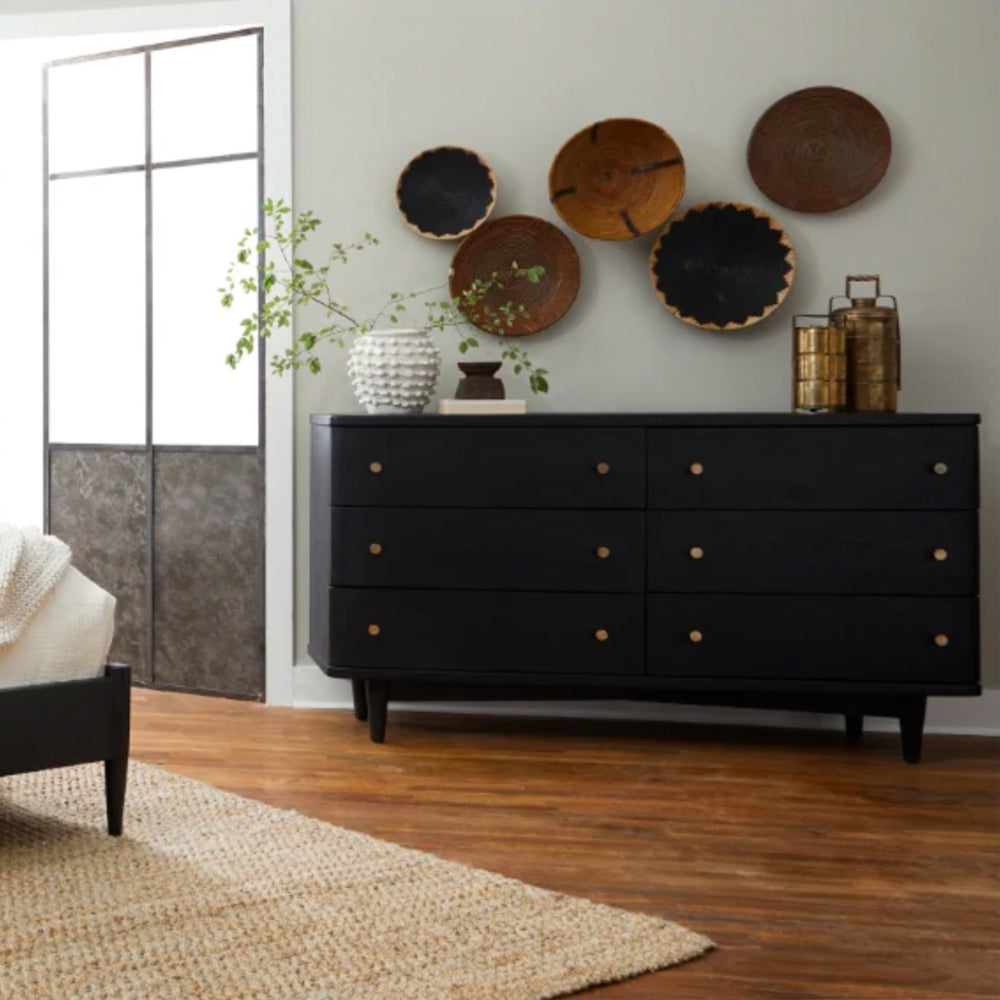 Our Cam dresser is a dramatic addition to any bedroom space. Crafted from FSC-Certified White Oak Wood, the dresser features a sculptured profile with soft edges. The textured surface is sealed with a water-based finish to highlight the natural beauty of the grain. Six generously sized drawers open smoothly to reveal ample space for storage.
