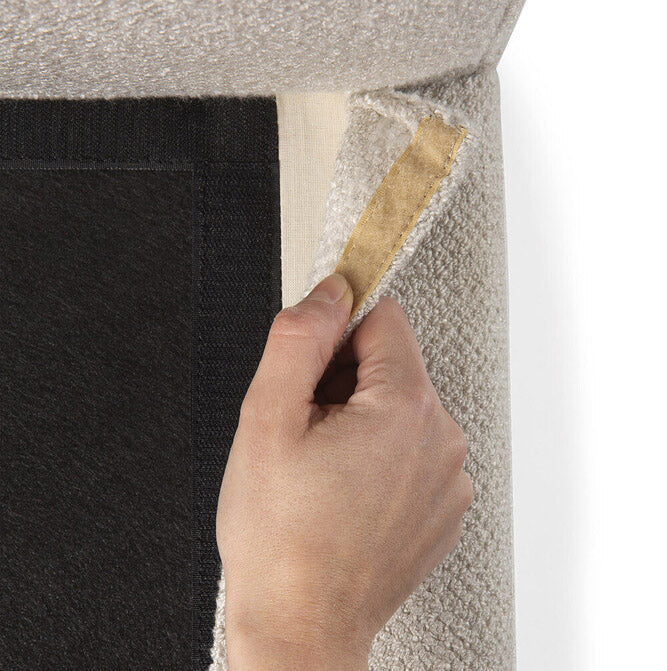 Material: Stain-resistant textile made using recycled cotton with additional fibres for technical performances. Eco-fabric upholstery and memory foam. Cotton 42%, Polyester 26%, Polyacrylic 32%.