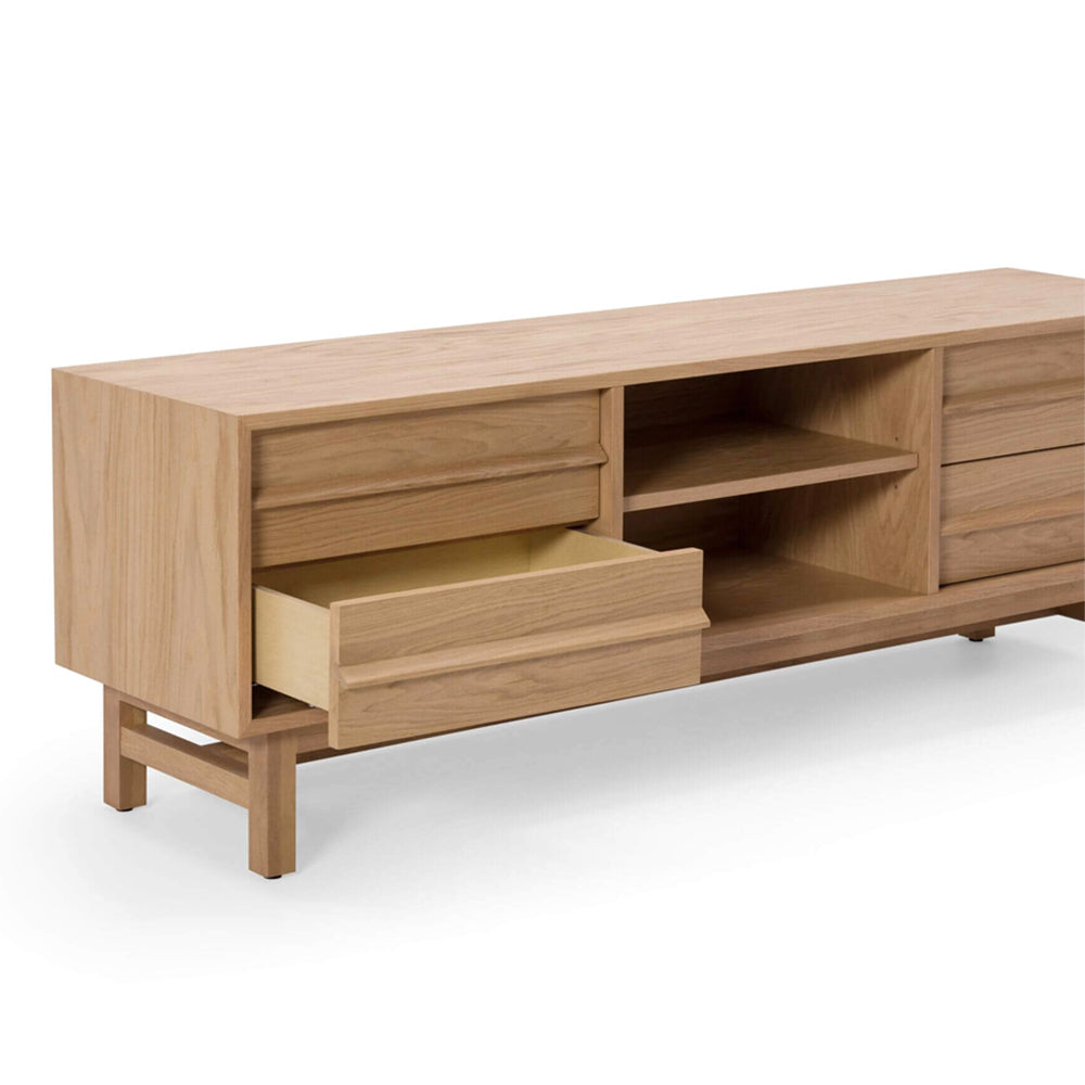 The timeless Mixon collection highlights the warmth and natural detailing of solid wood, with a mid-century modern appeal. Featuring solid wood handles and side-mounted full extension drawers slide. The Mixon collection includes Bedroom, Side tables, as well as sideboards.
