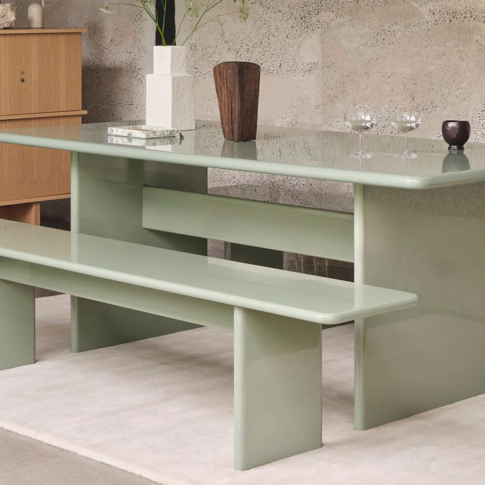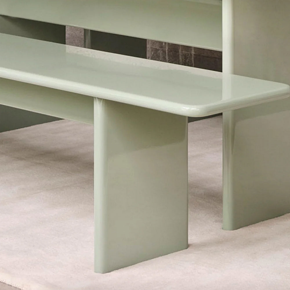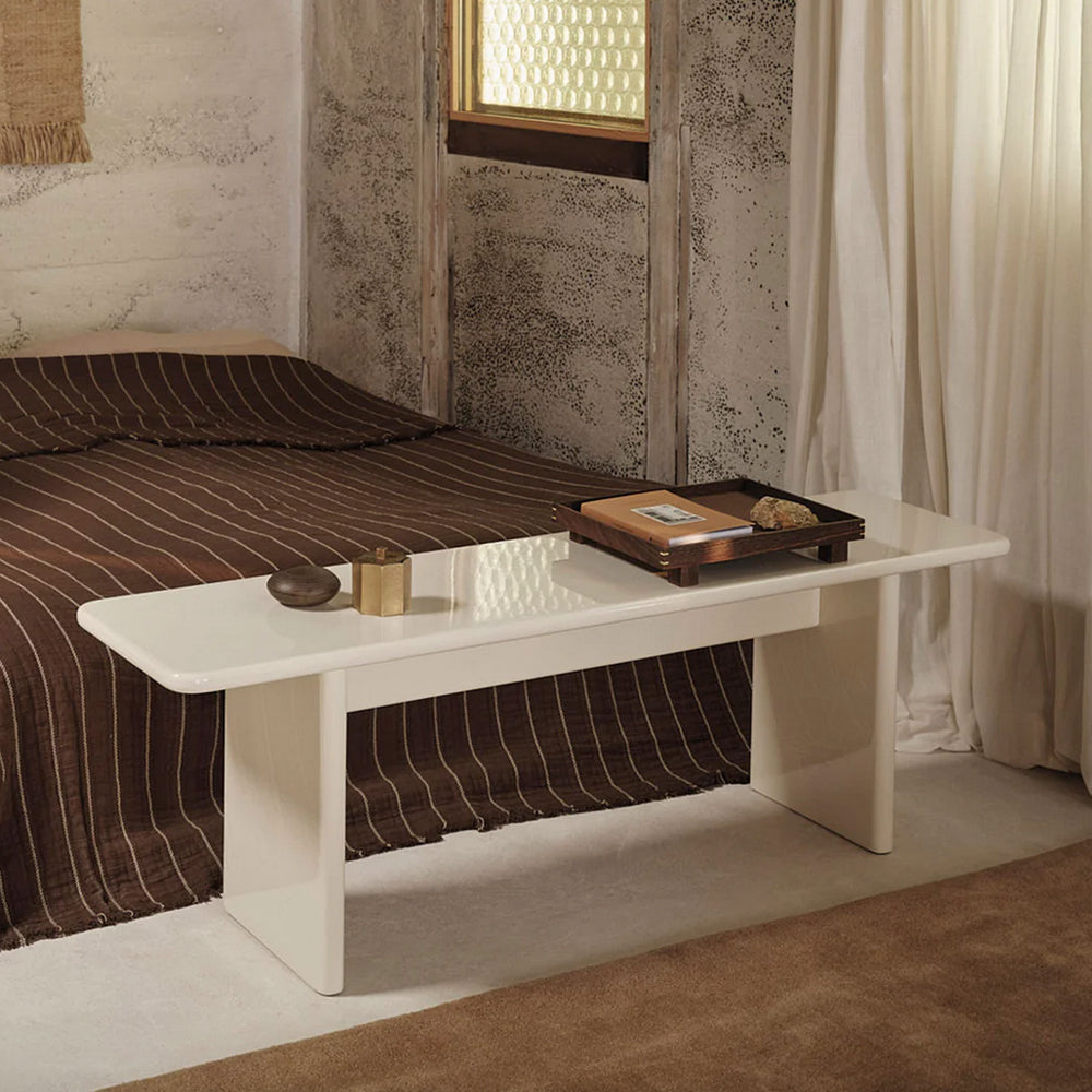 Add a touch of refinement to your home with the elegant Rink Bench. Extending the Rink Series, the bench is carefully fashioned from FSC™ certified MDF and finished with a vibrant, high-gloss lacquer. Its design features a classic table silhouette with smooth, rounded edges for a contemporary expression. The Rink Bench offers exceptional versatility, whether styled in the hallway or positioned at the foot of a bed.