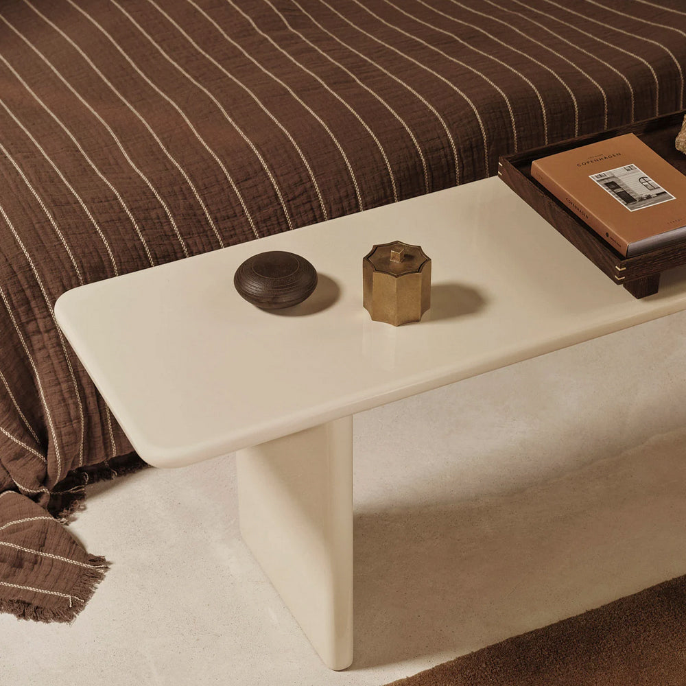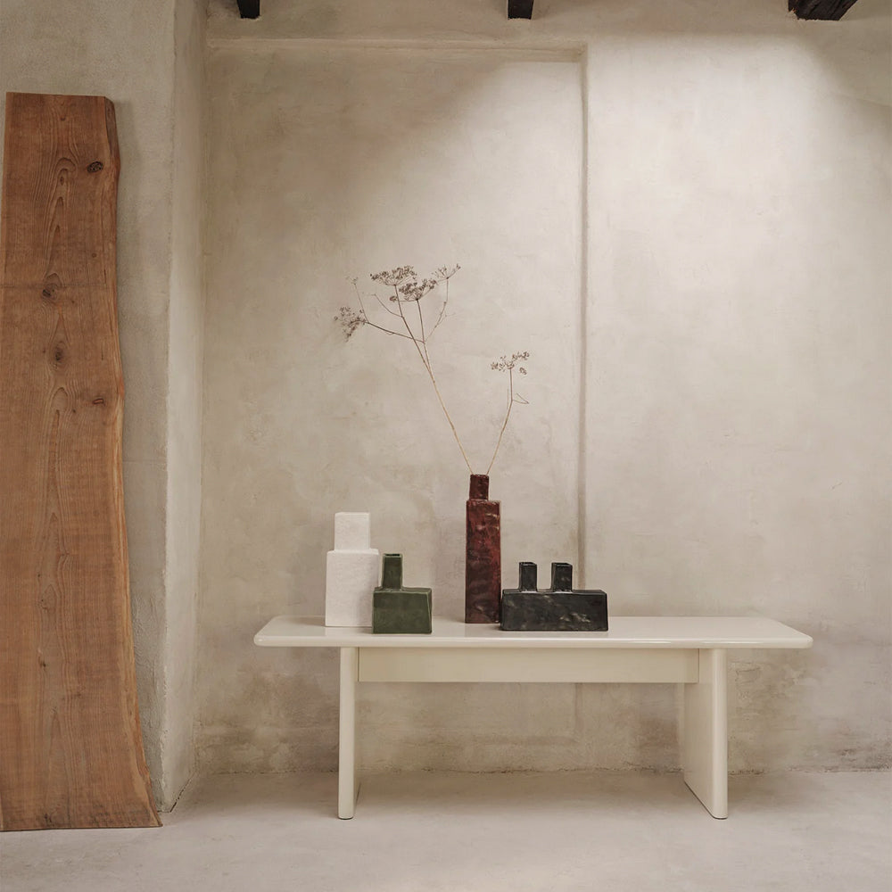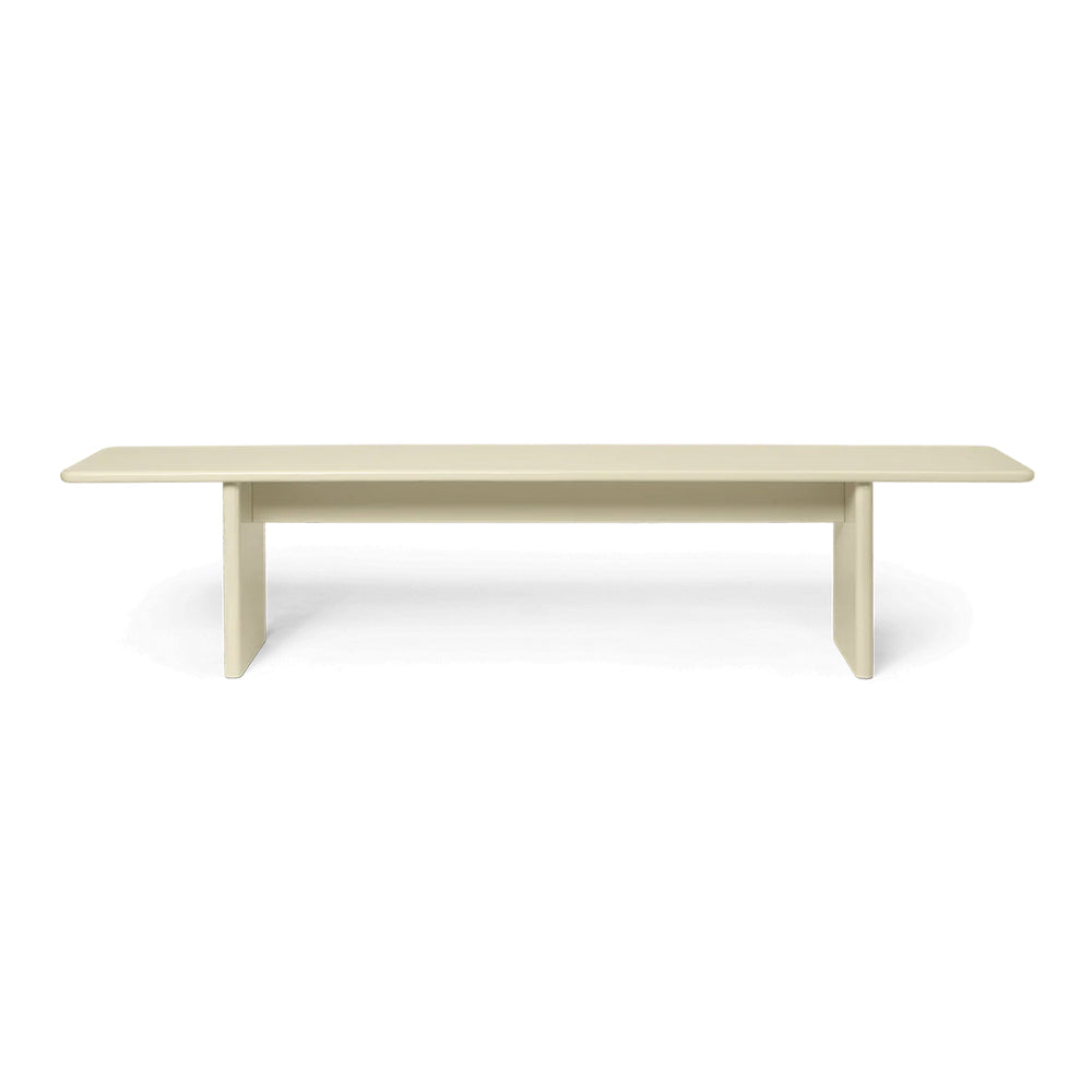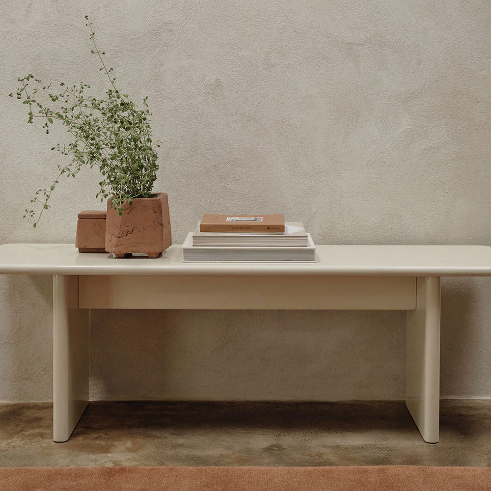 Add a touch of refinement to your home with the elegant Rink Bench. Extending the Rink Series, the bench is carefully fashioned from FSC™ certified MDF and finished with a vibrant, high-gloss lacquer. Its design features a classic table silhouette with smooth, rounded edges for a contemporary expression. The Rink Bench offers exceptional versatility, whether styled in the hallway or positioned at the foot of a bed.